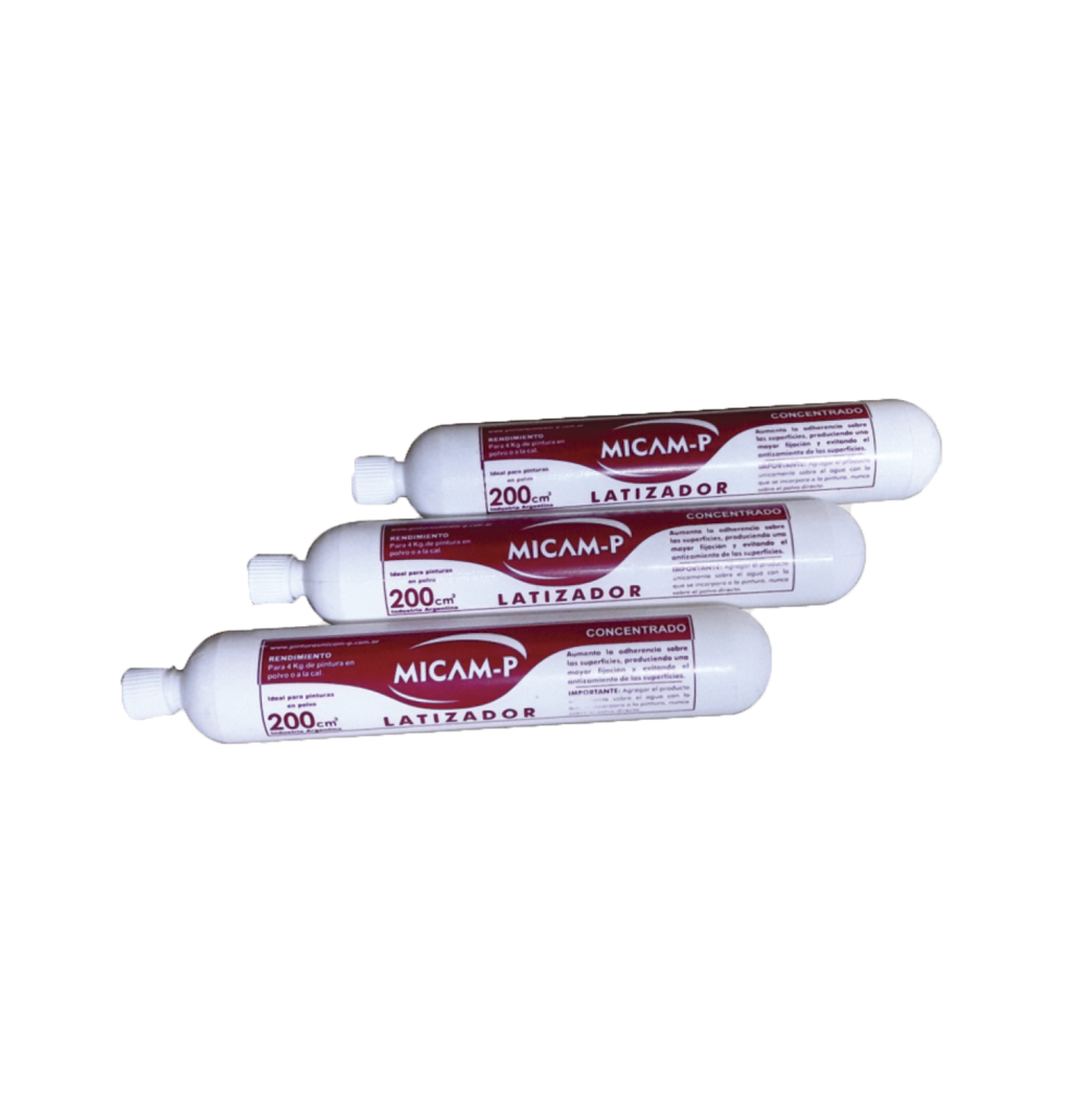 Indicaciones de uso: Diluir un pomo de LATIZADOR MICAM-P en 10 lt de agua y luego agragar la pintura al agua MICAM-P del color deseado.