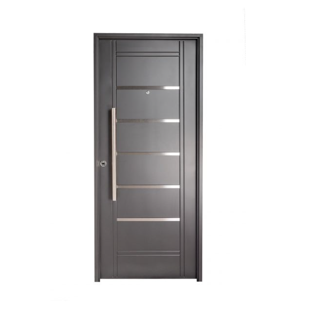 Puerta doble chapa inyectada con detalles aluminio y barral largo de 80 x 2. N 2410